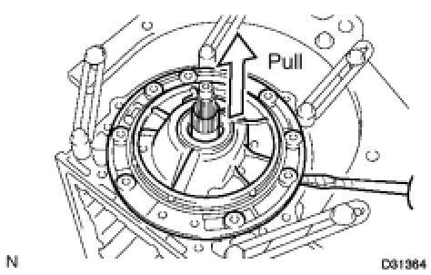 (a) Remove the front planetary gear assembly and the 1 way clutch inner race from the transmission case.