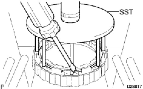 (a) Using SST and a press, remove the snap ring.