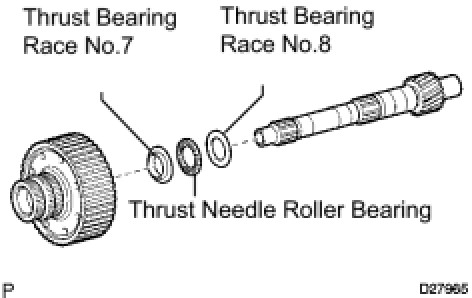 (a) Remove the thrust bearing race No.8, the thrust needle roller bearing, the thrust bearing race No.7 and the planetary ring gear flange from the intermediate shaft.