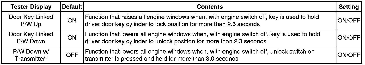 WINDSHIELD / WINDOWGLASS: POWER WINDOW CONTROL SYSTEM: CUSTOMIZE PARAMETERS