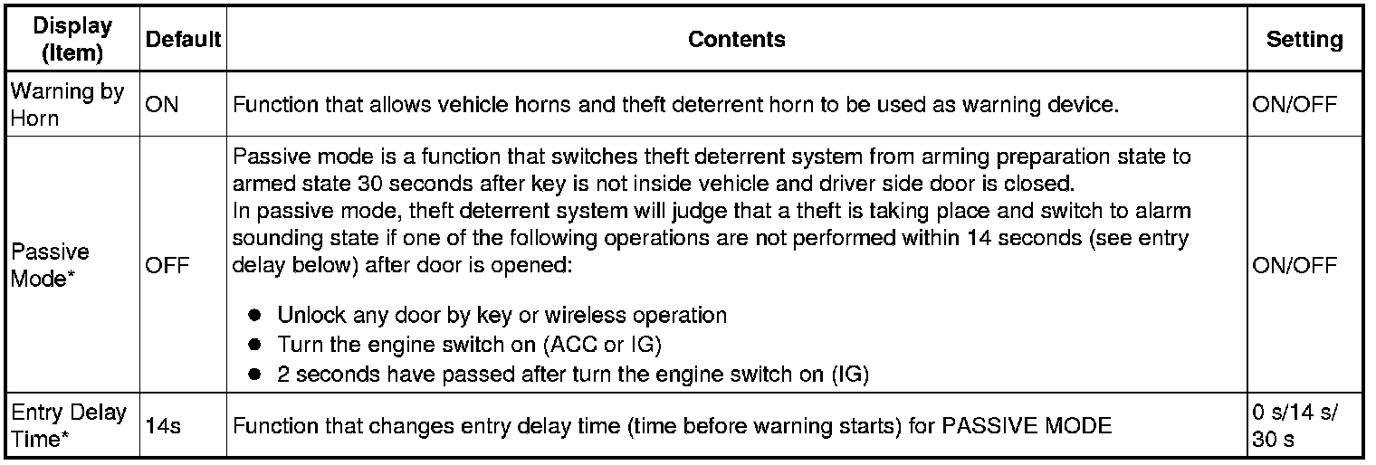 THEFT DETERRENT: THEFT DETERRENT SYSTEM: CUSTOMIZE PARAMETERS