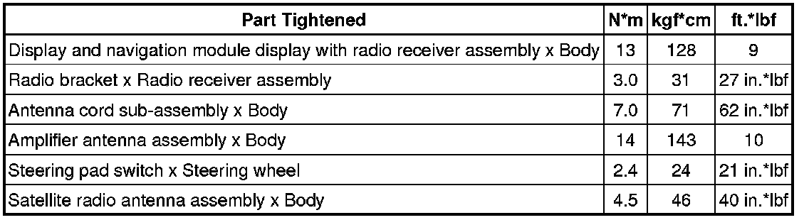 SERVICE SPECIFICATIONS: AUDIO / VISUAL: TORQUE SPECIFICATIONS