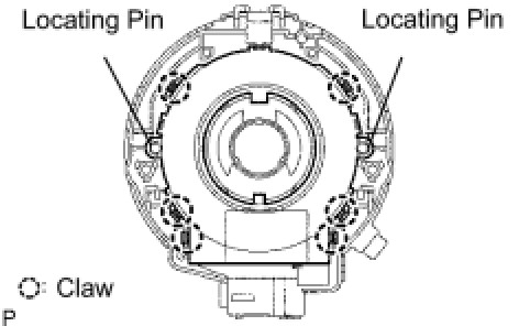 (a) Align the locating pins, engage the claws and install the steering sensor to the spiral cable sub-assembly
