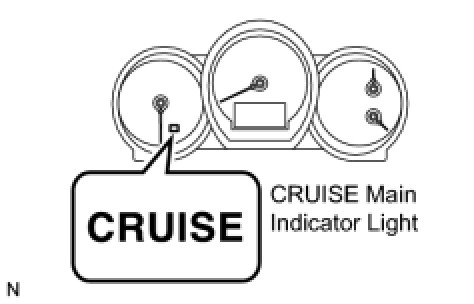 (b) Check that the CRUISE main indicator light illuminates when the cruise control main switch is turned ON, and that the indicator light turns off when the main switch is turned OFF. If the results are not as specified, inspect the CRUISE main indicator light circuit Cruise Main Indicator Light Circuit.