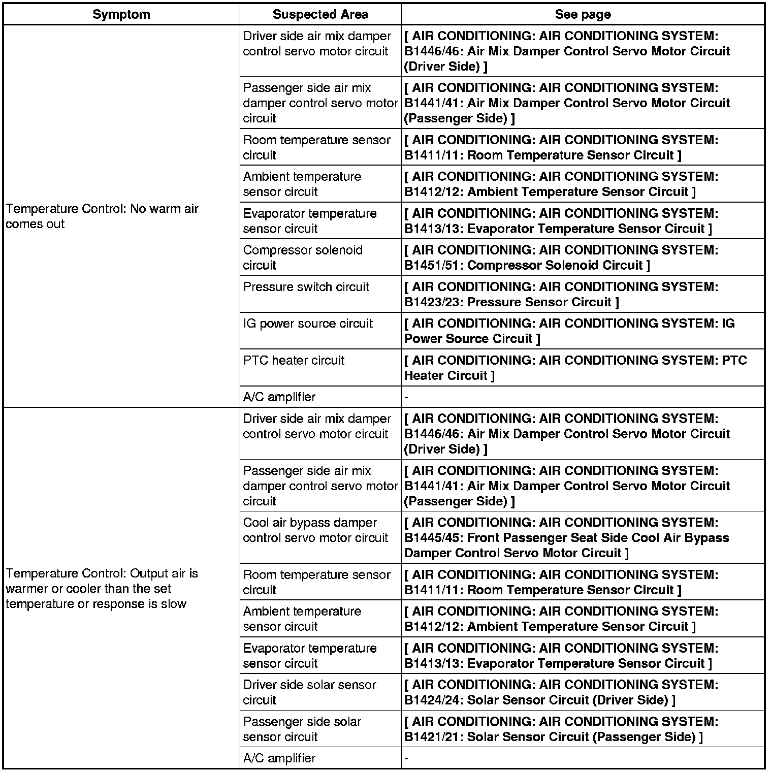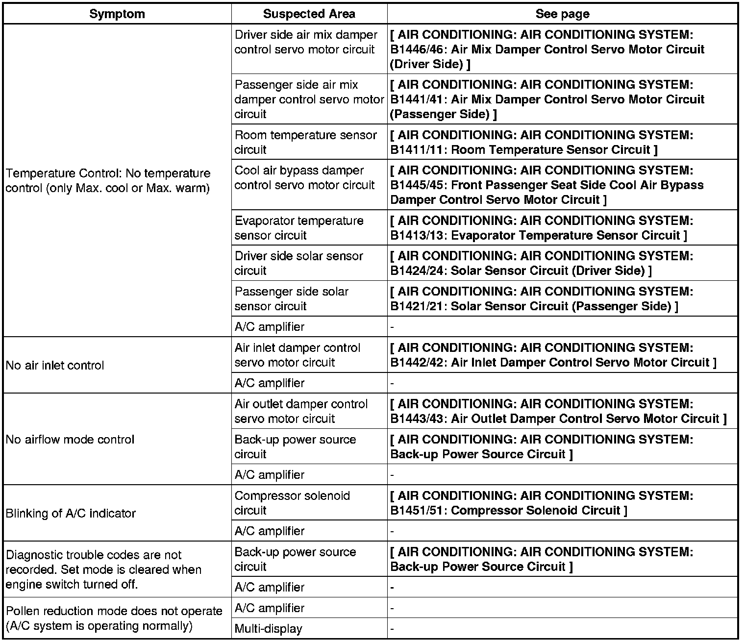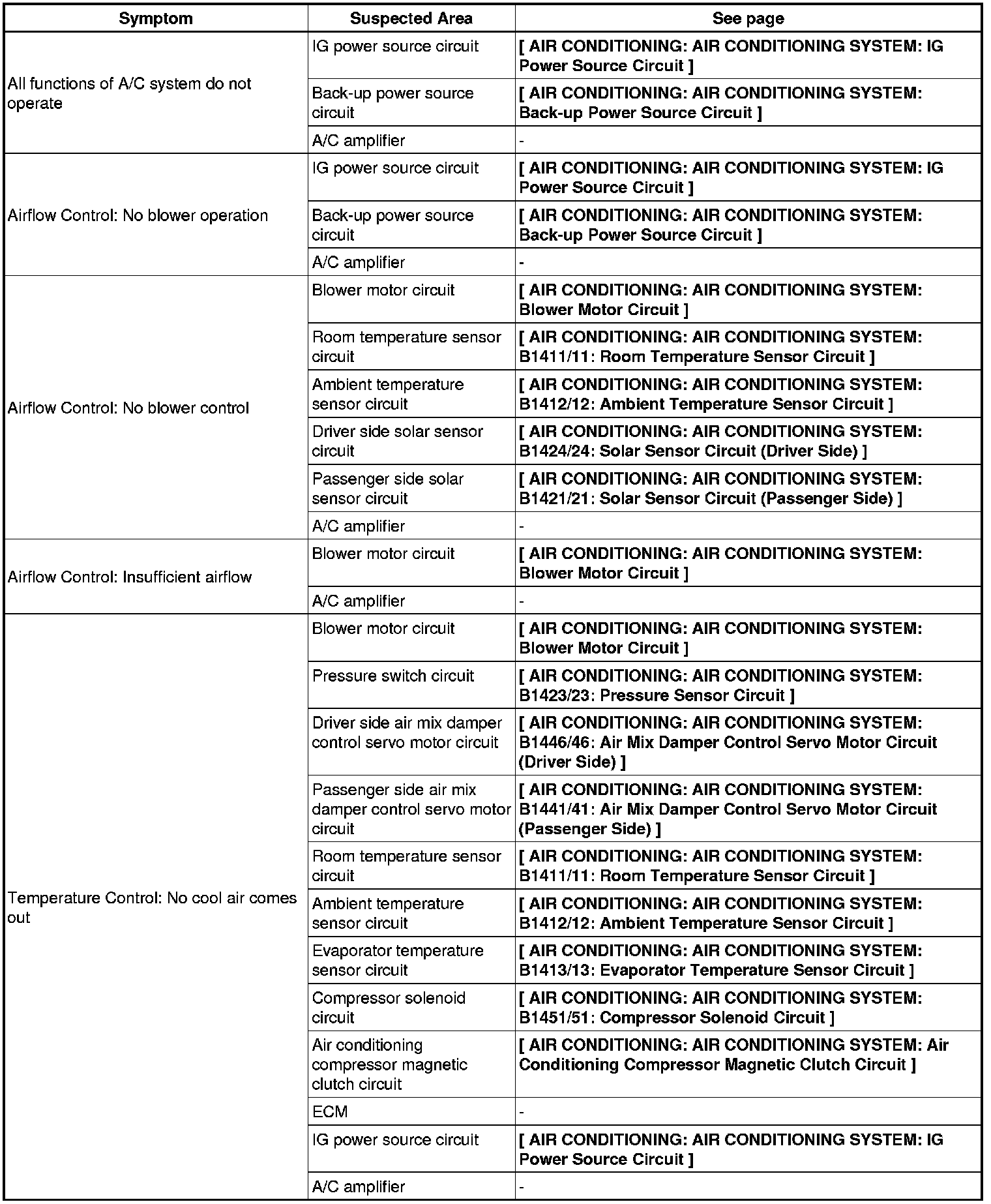 AIR CONDITIONING: AIR CONDITIONING SYSTEM: PROBLEM SYMPTOMS TABLE