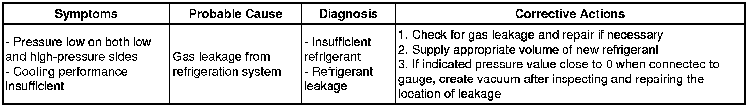 (4) The A/C system does not function effectively due to poor circulation of the refrigerant.