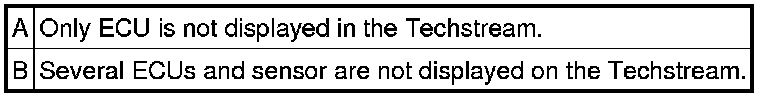 * Perform the following inspection for the ECUs (sensors) which are not displayed on the Techstream. If malfunction cannot be identified, then perform the following inspections for the ECUs (sensors) connected to the CAN communication.