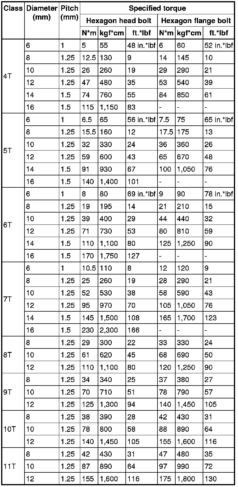 Standard Bolt - Specified Torque For Standard Bolts
