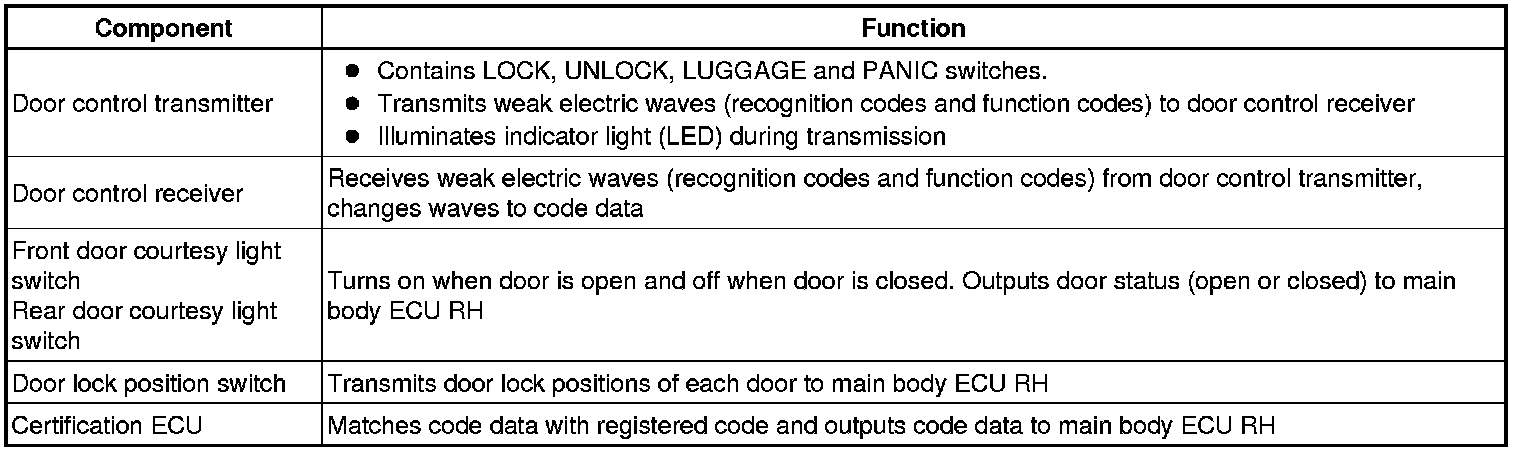 * The certification ECU performs the code identification process and the main body ECU RH controls the door lock. A serial data link is provided for communication between the certification ECU and main body ECU RH.