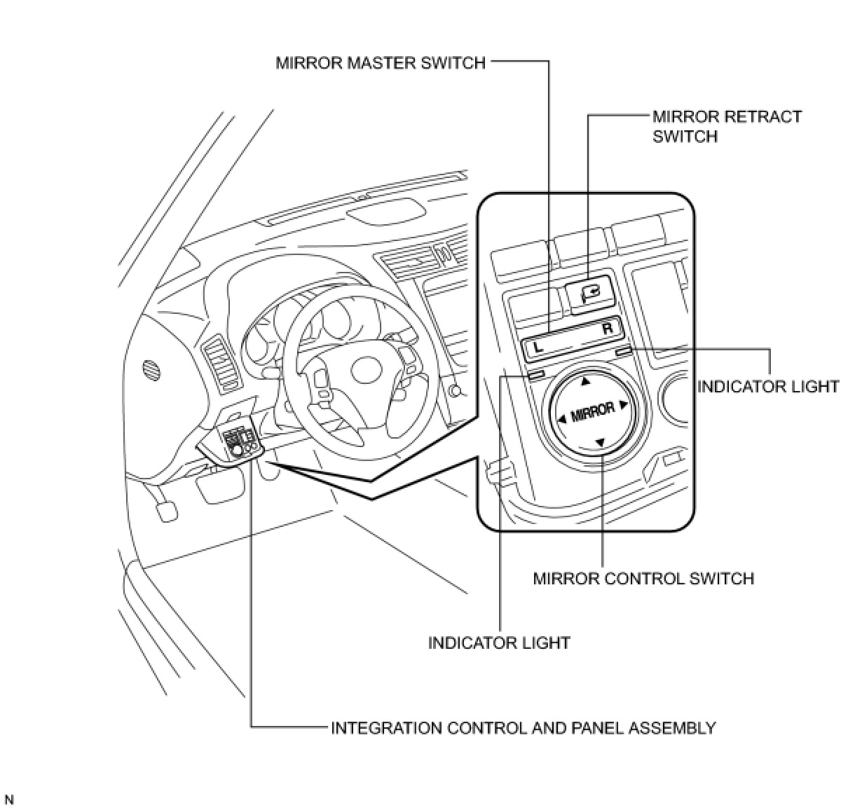 MIRROR: POWER MIRROR CONTROL SYSTEM: PARTS LOCATION