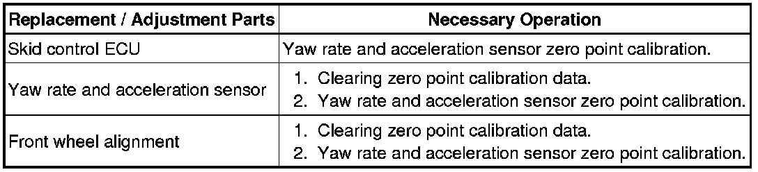 After replacing the VSC relevant components or performing "Front wheel alignment adjustment", clear and read the sensor calibration data.
