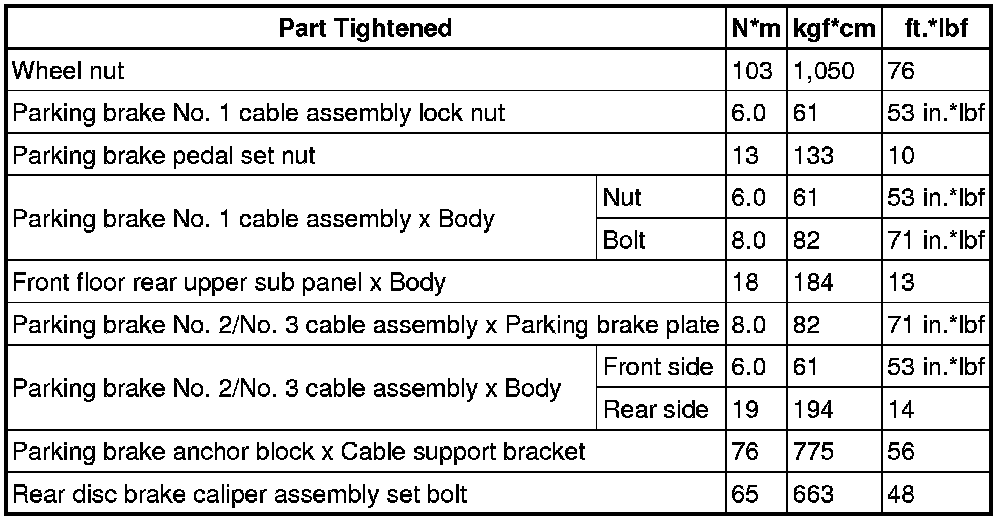 SERVICE SPECIFICATIONS: PARKING BRAKE: TORQUE SPECIFICATIONS