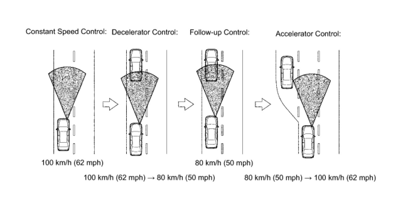 (c) The constant speed control mode is designed to maintain a constant cruising speed. The vehicle-to-vehicle distance control mode is designed to control cruising using a constant speed function, deceleration cruising function, follow-up cruising function and acceleration cruising function.