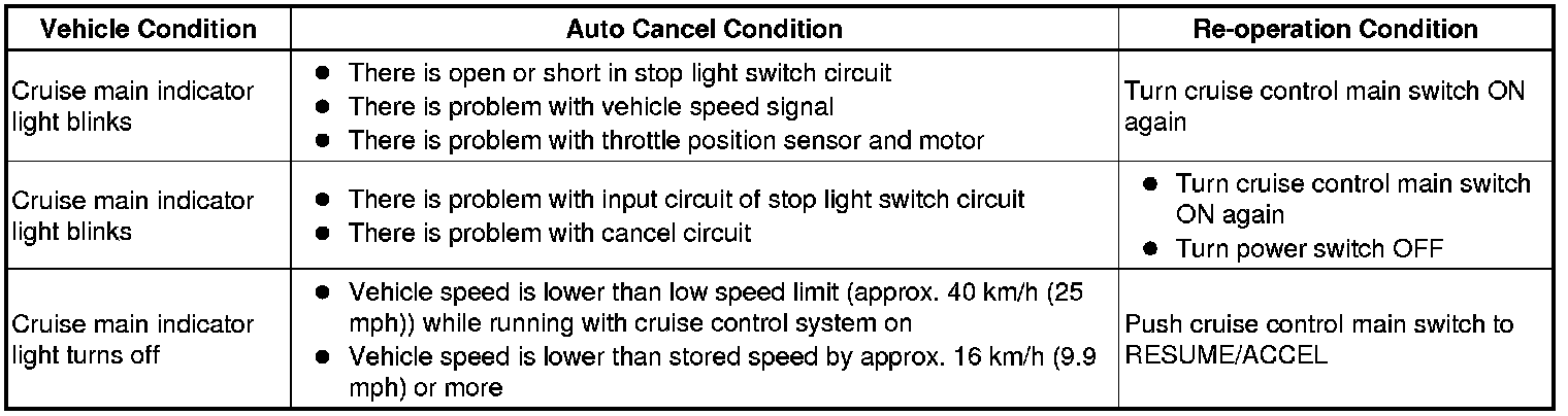 CRUISE CONTROL: CRUISE CONTROL SYSTEM: FAIL-SAFE CHART