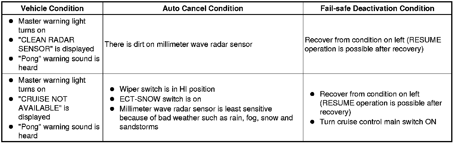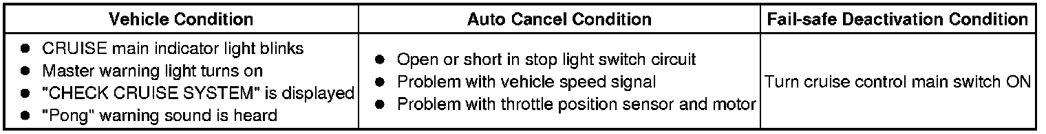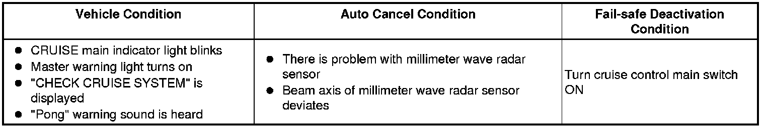 CRUISE CONTROL: DYNAMIC RADAR CRUISE CONTROL SYSTEM: FAIL-SAFE CHART
