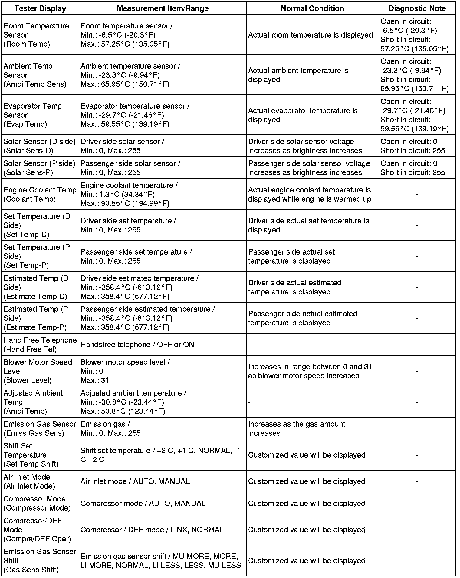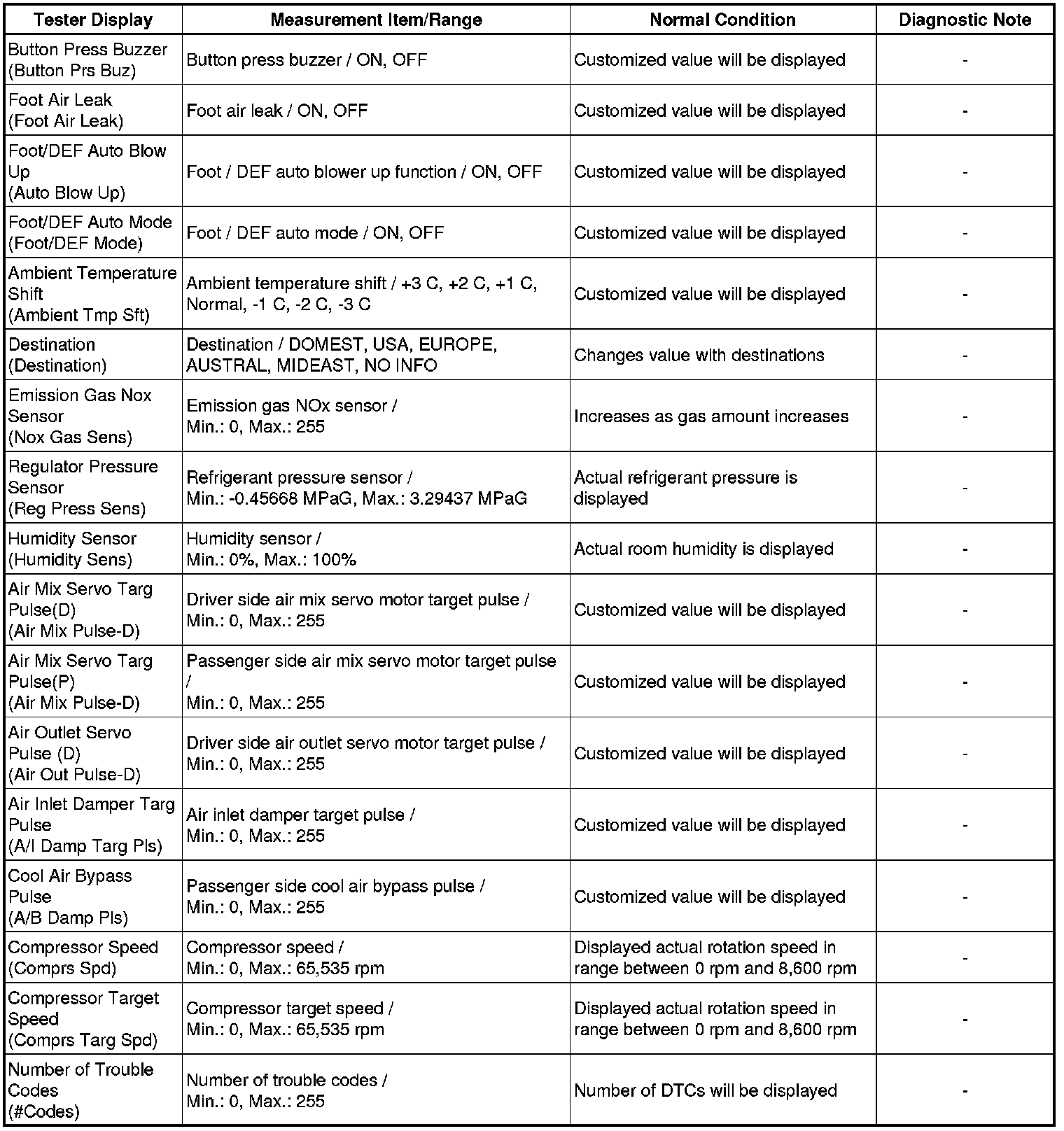 (1) for Air Conditioner: Body Electrical / Air Conditioner / Data List.