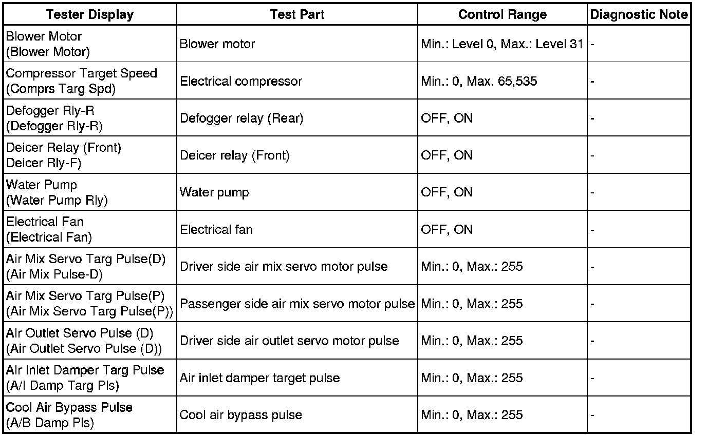 (1) for Air Conditioner: Body Electrical / Air Conditioner / Active Test.