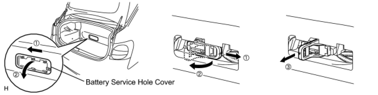 (a) Before inspecting the high-voltage system or disconnecting the low voltage connector of the inverter with converter assembly, take safety precautions, such as wearing insulated gloves and removing the service plug grip to prevent electrical shocks. After removing the service plug grip, put it in your pocket to prevent other technicians from accidentally reconnecting it while you are working on the high-voltage system.
