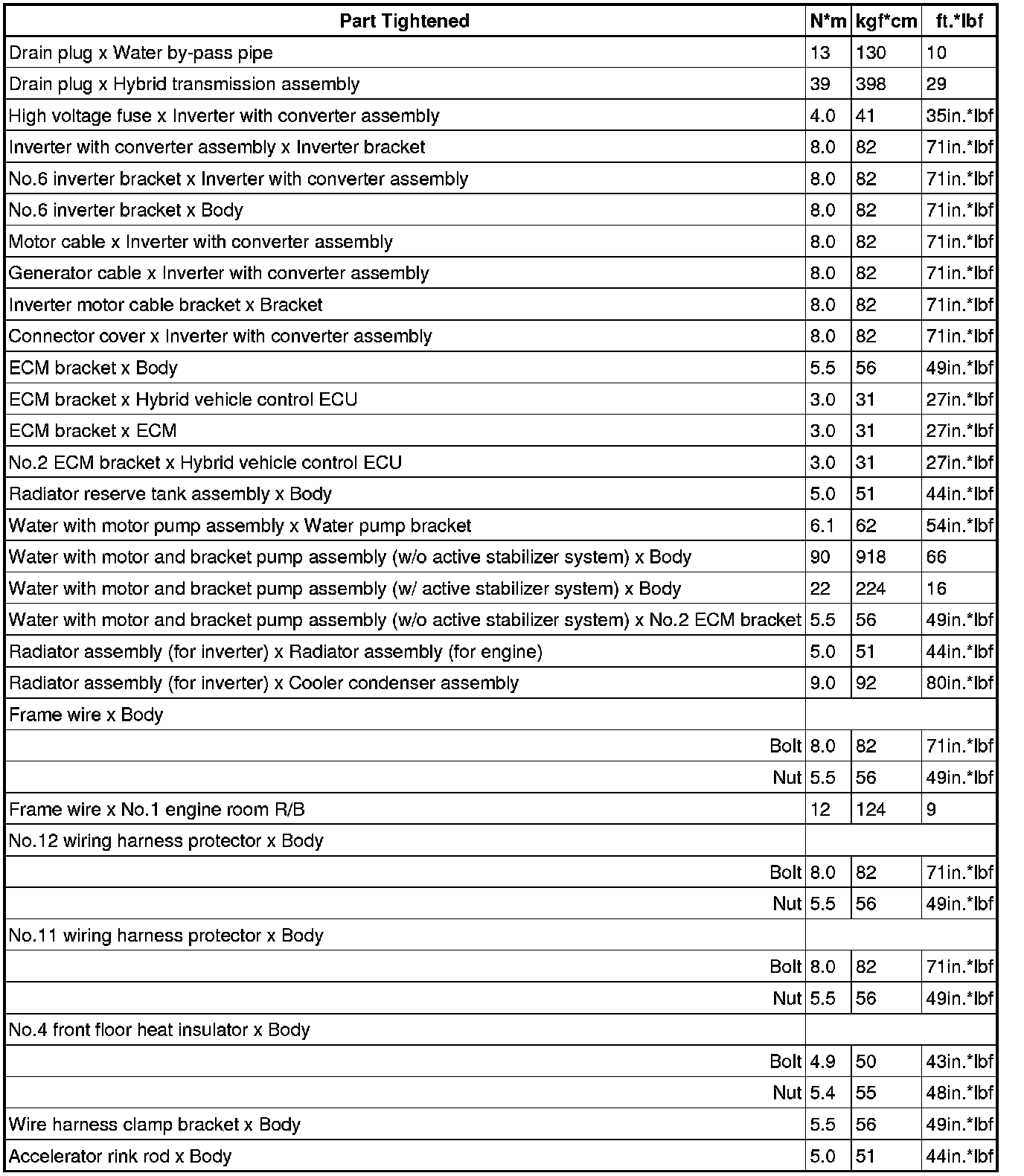 SERVICE SPECIFICATIONS: L110 HYBRID VEHICLE CONTROL: TORQUE SPECIFICATIONS