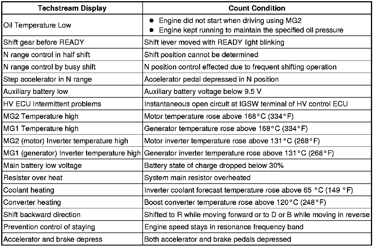 L110 HYBRID VEHICLE CONTROL: HYBRID CONTROL SYSTEM: OPERATION HISTORY DATA