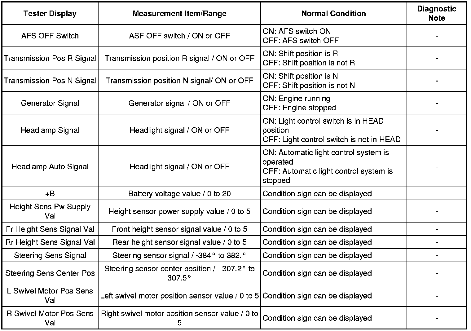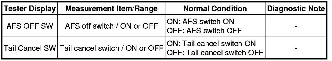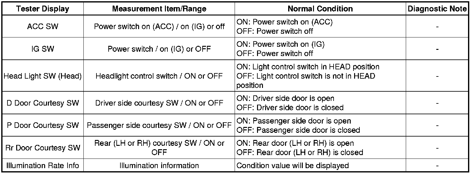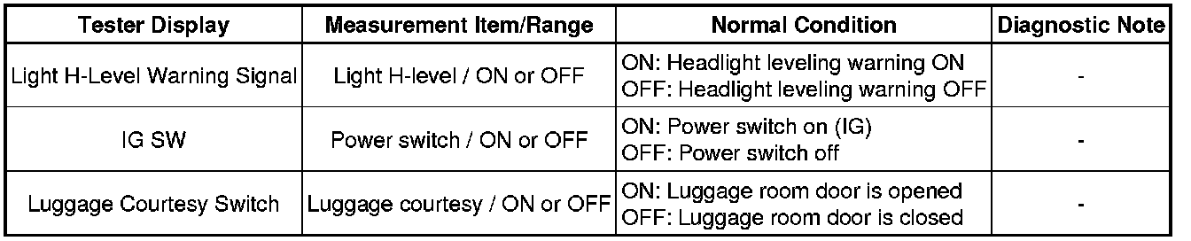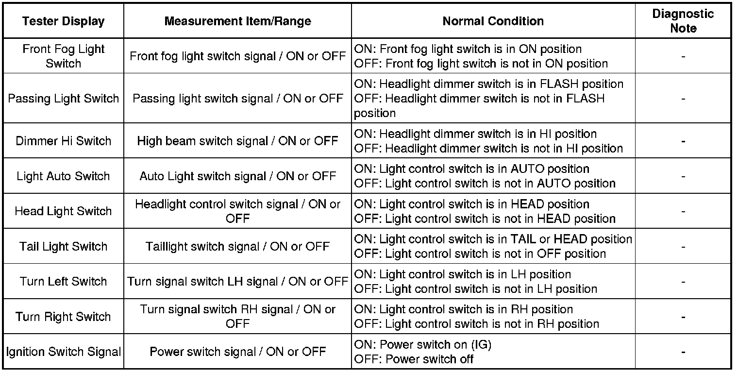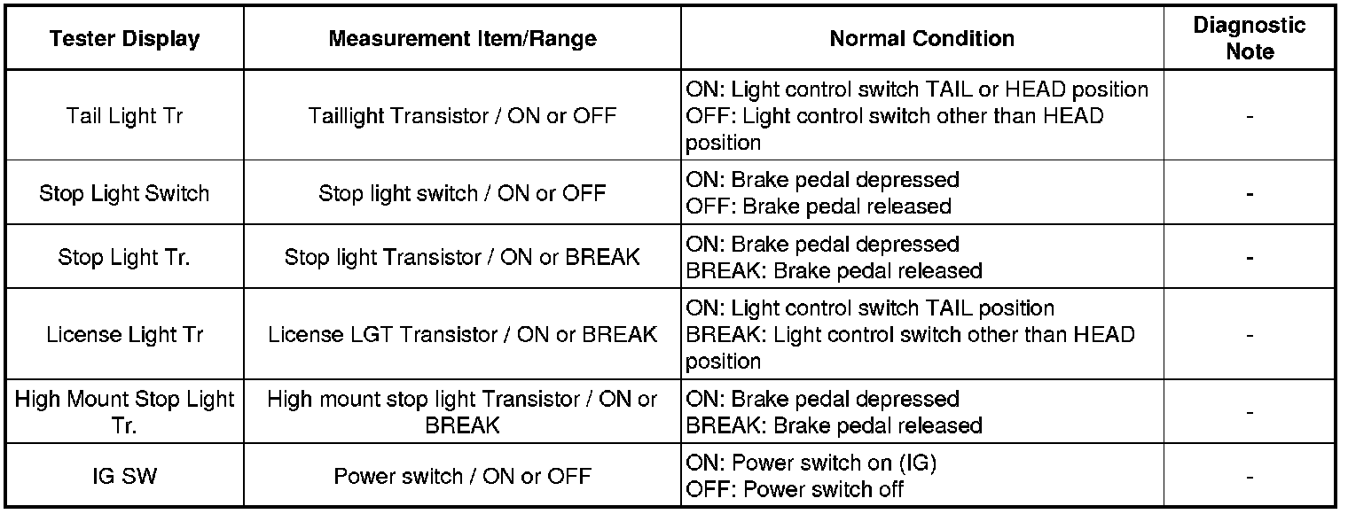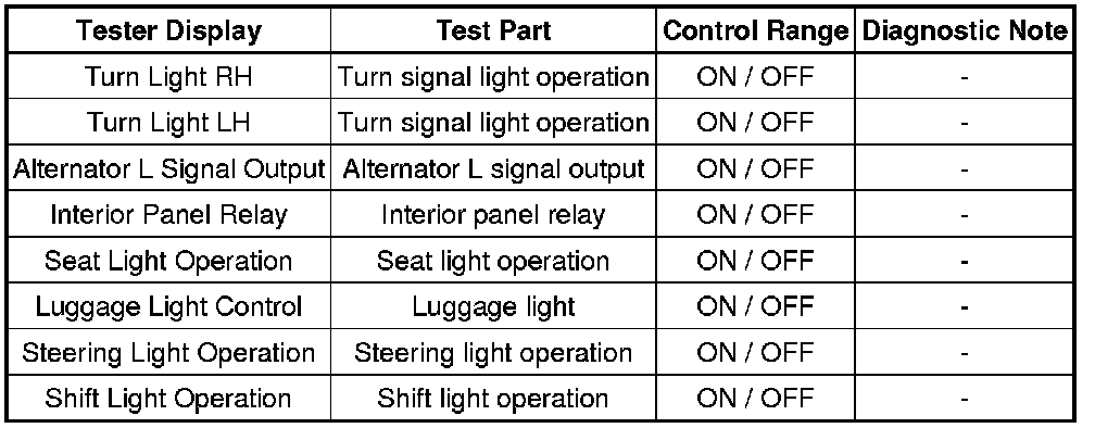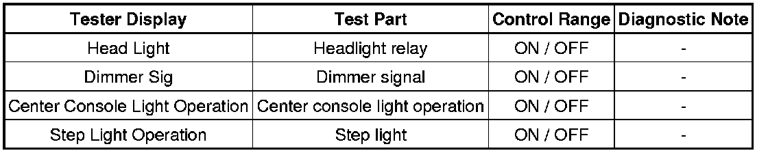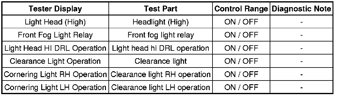LIGHTING: LIGHTING SYSTEM: DATA LIST / ACTIVE TEST