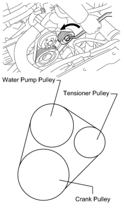(a) Rotate the tensioner pulley counterclockwise, and then install the V belt as shown in the illustration.