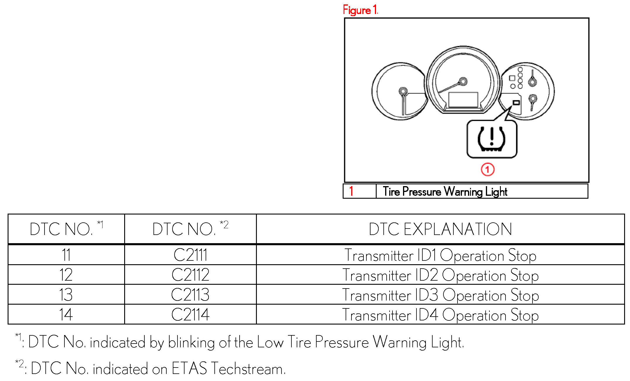 - The Diagnostic Trouble Codes (DTCs) listed may be stored in the TPWS ECU until the tire pressure warning valves/sensors are activated.