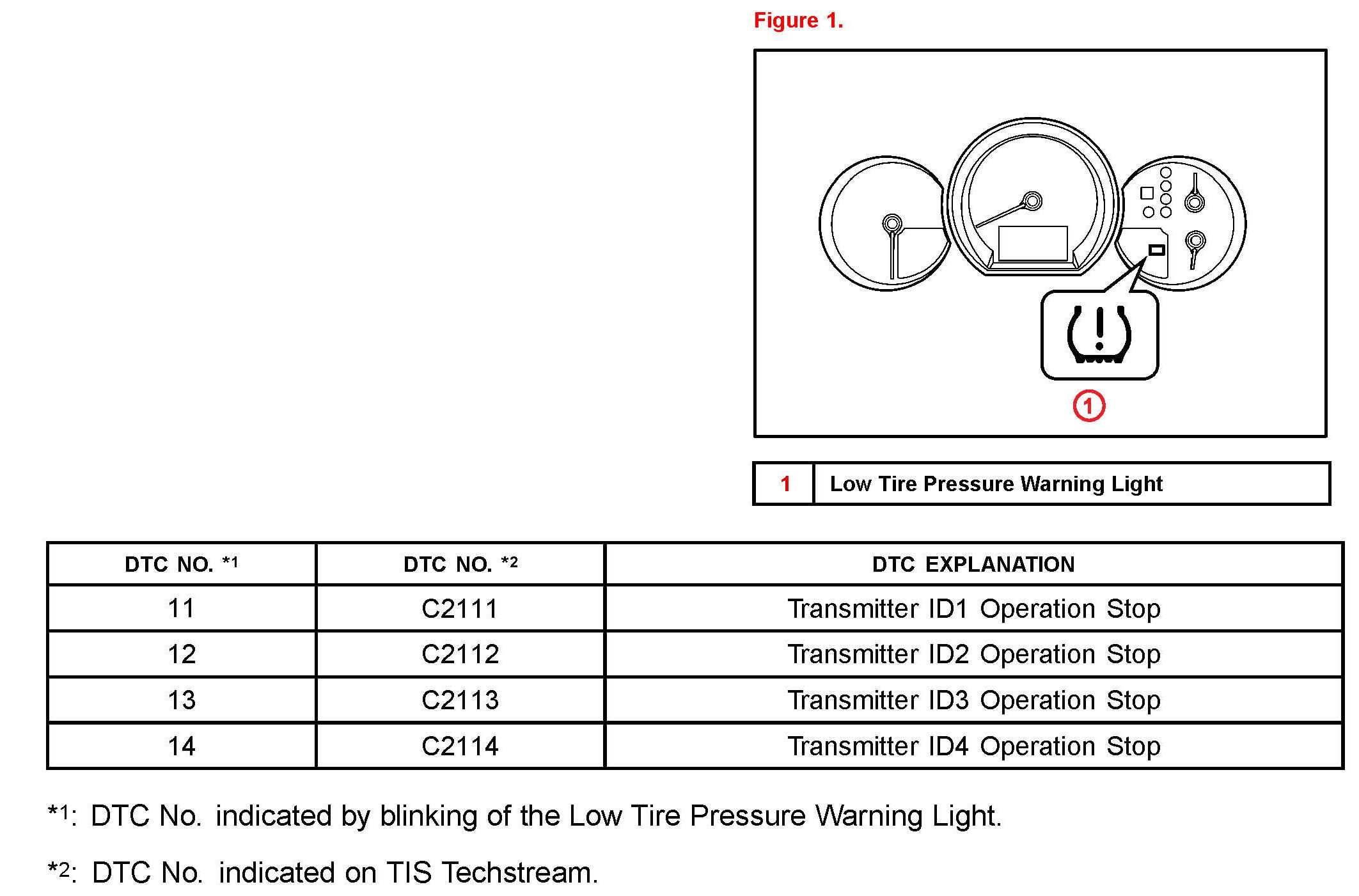 ^ The DTCs will automatically clear when the tire pressure warning valves/sensors are activated.