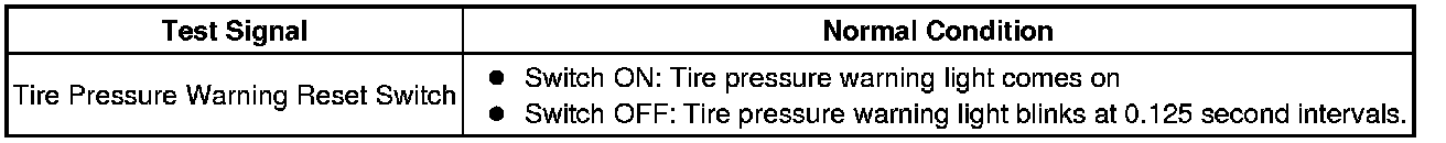 * During Test Mode, the system is not initialized by pushing the tire pressure warning reset switch. The circuit of the tire pressure warning reset switch can be inspected during this mode.