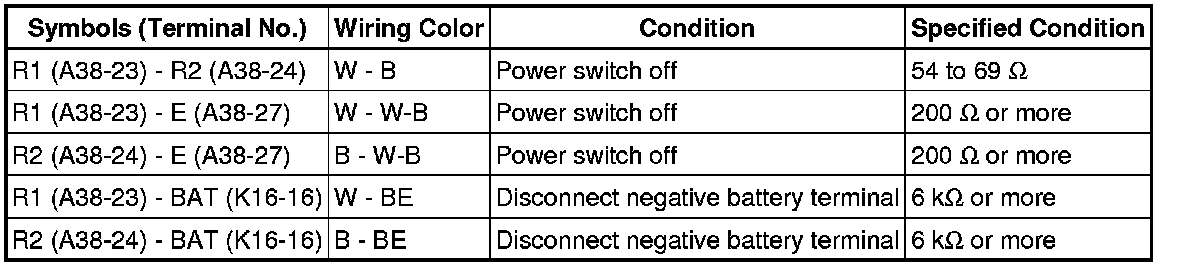 (b) Measure the resistance according to the value(s) in the table below.