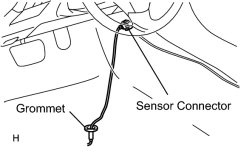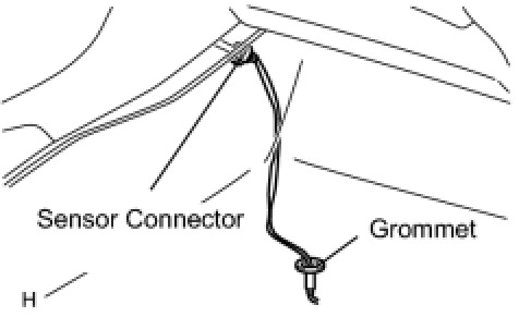 (b) Pass the sensor connector through the floor panel and install the grommet.