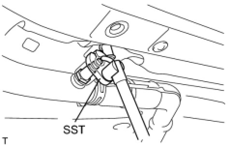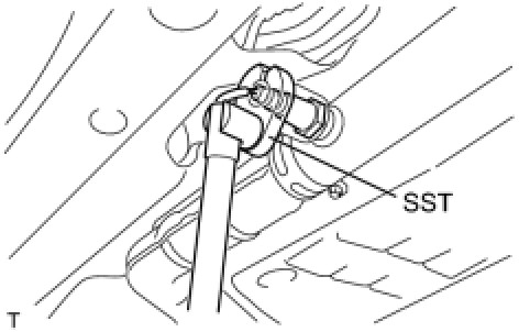 (c) Using SST, remove the sensor from the front exhaust pipe.