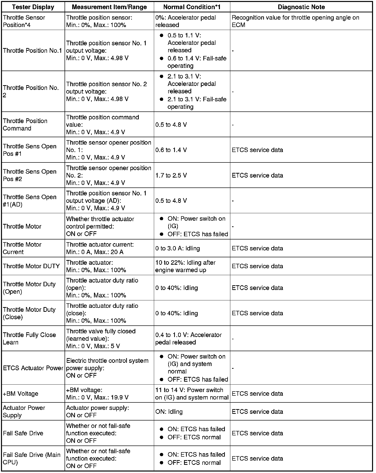 * *4: Excluding throttle valve opening due to Idle Speed Control (ISC).