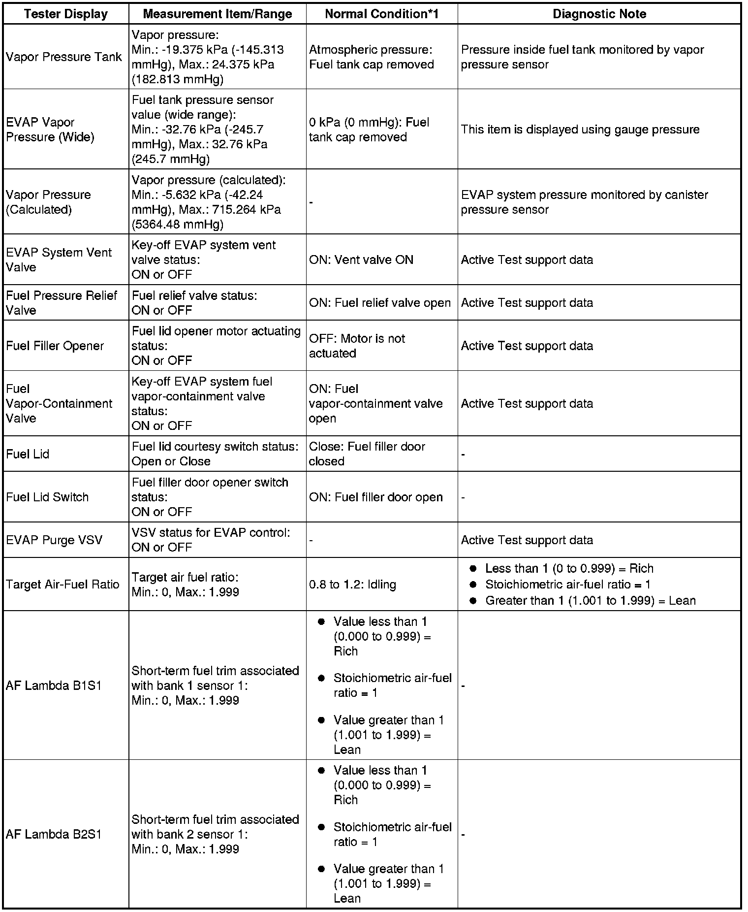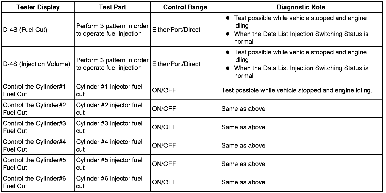 (e) Perform the Active Test by referring to the table below.