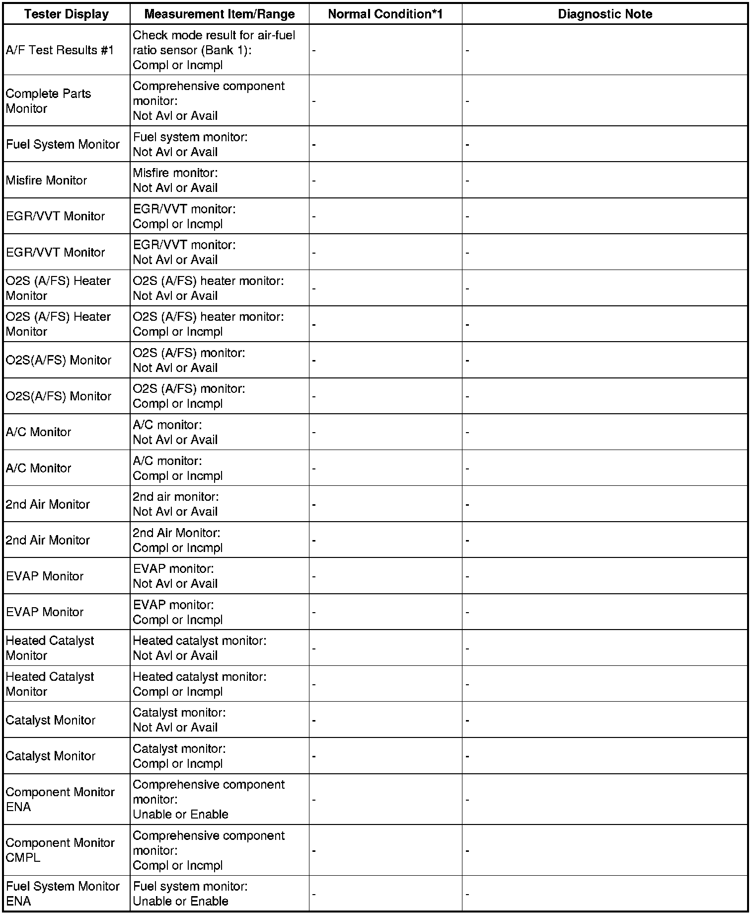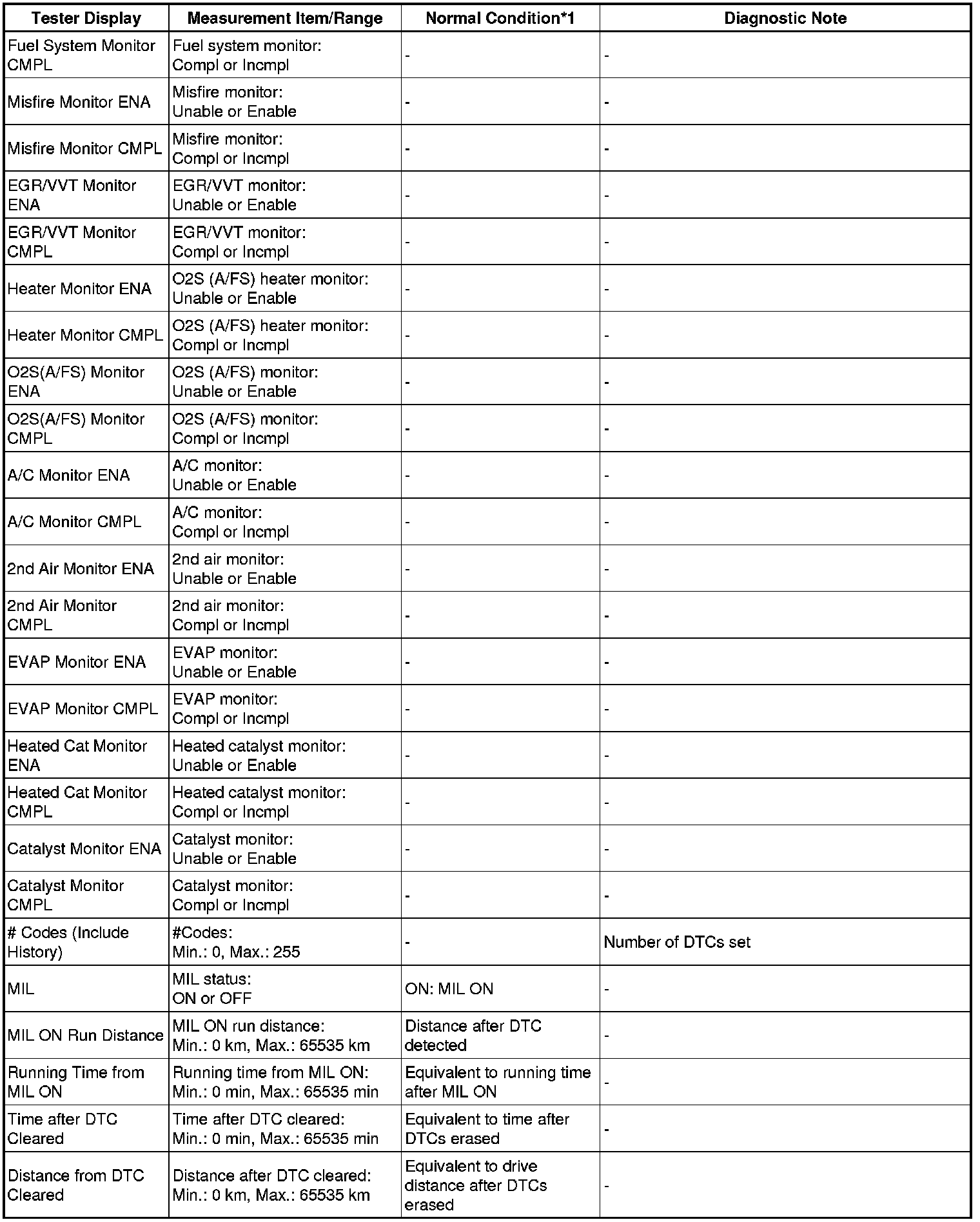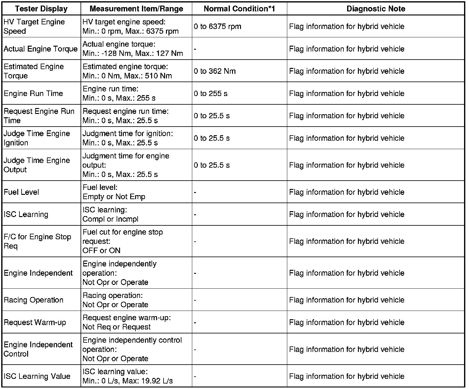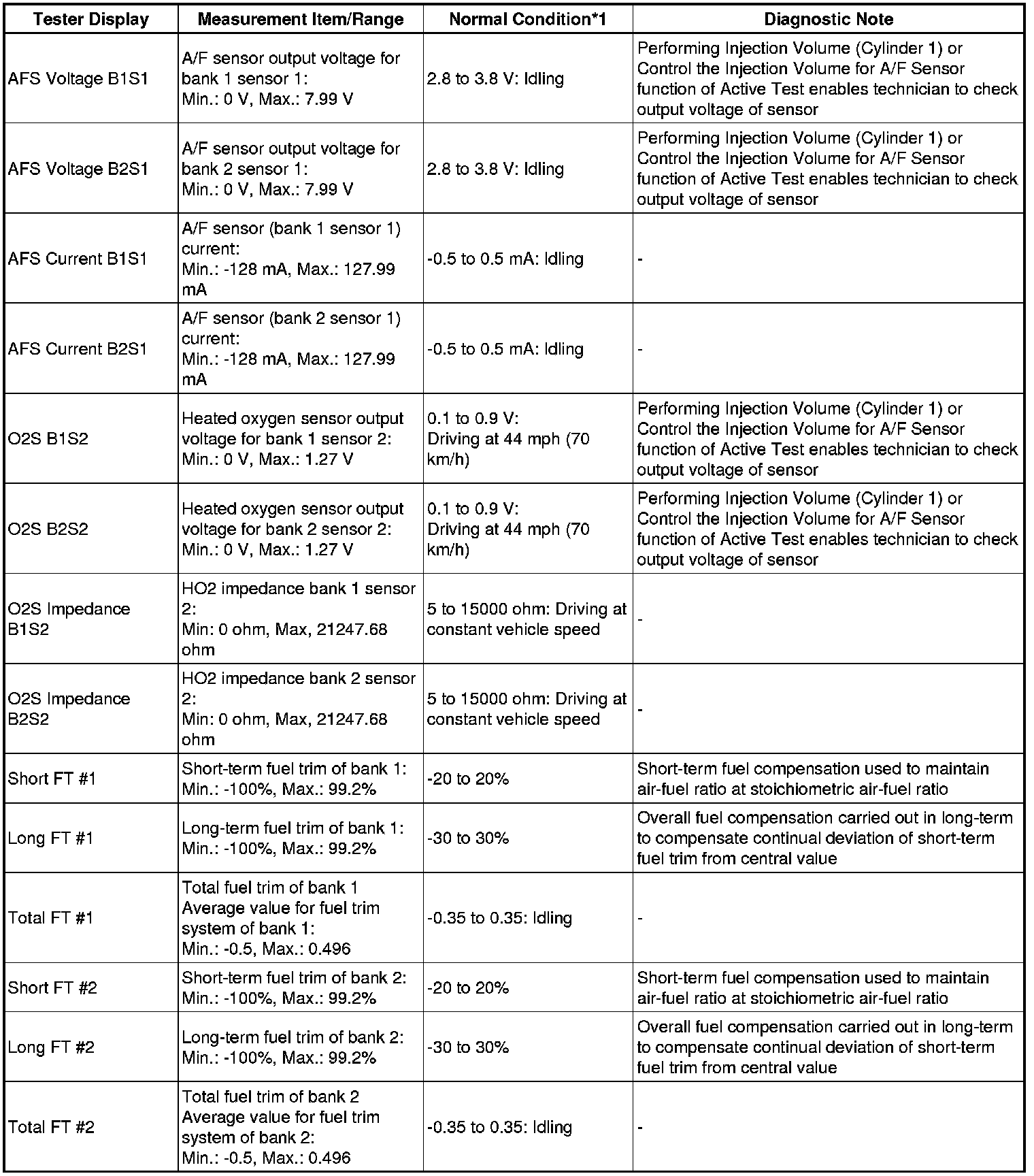 * *1: If no idling conditions are specified, the shift lever should be in the N or P position, and the A/C switch and all accessory switches should be off.