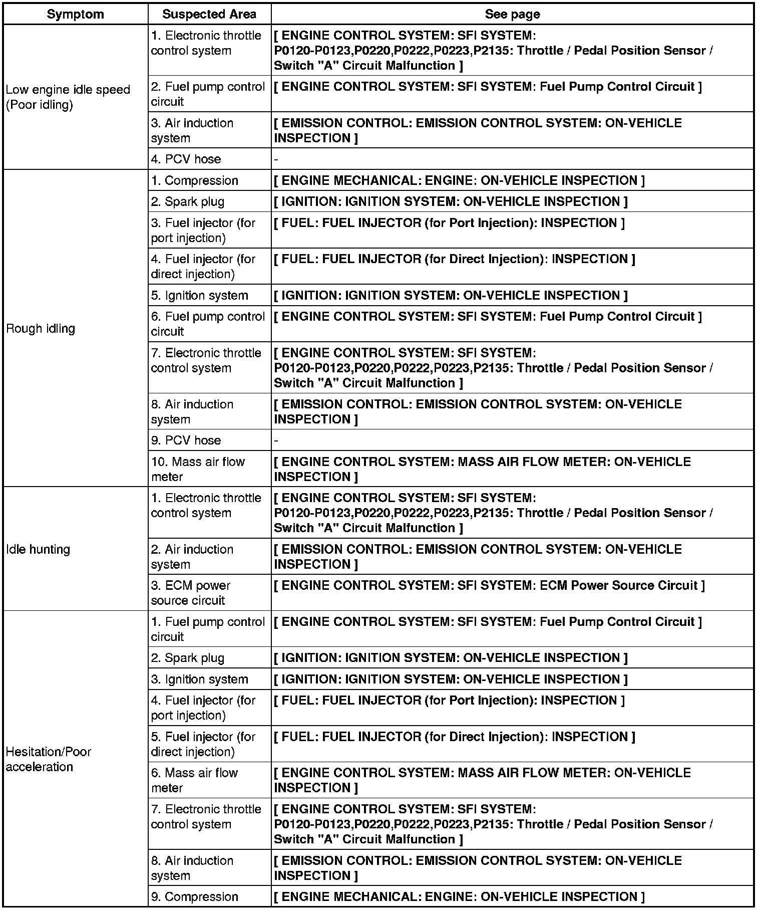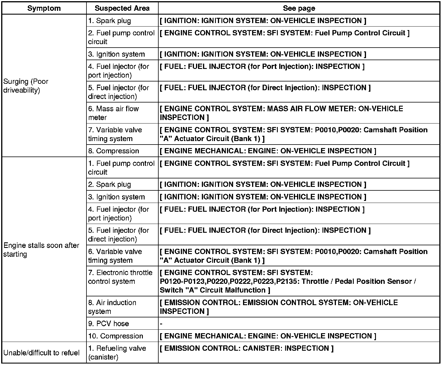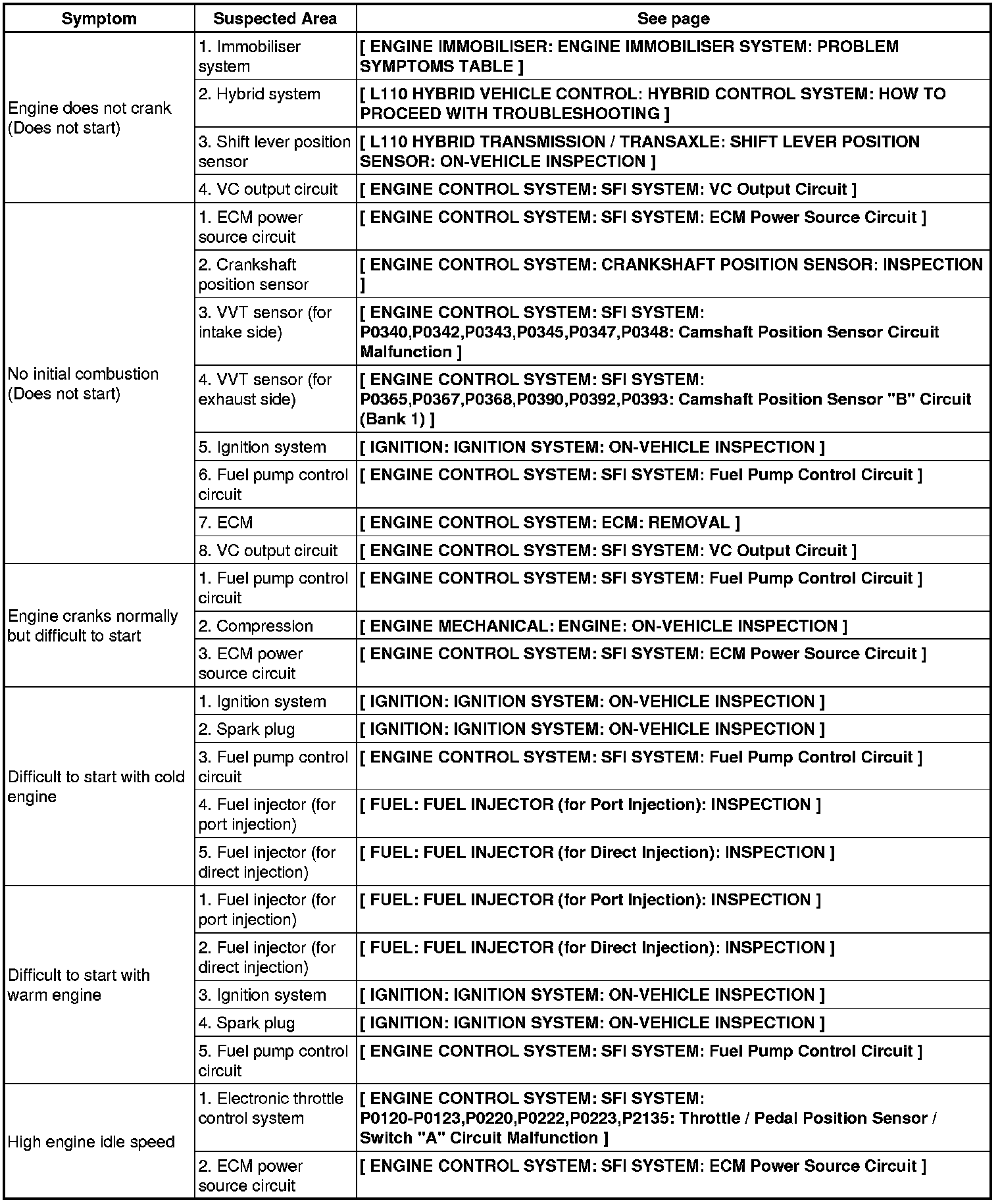 2GR-FSE ENGINE CONTROL SYSTEM: SFI SYSTEM: PROBLEM SYMPTOMS TABLE