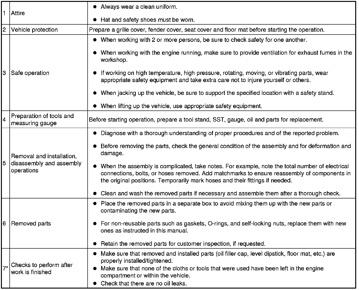 3. PRECAUTIONS TO BE OBSERVED WHEN INSPECTING OR SERVICING ENGINE COMPARTMENT