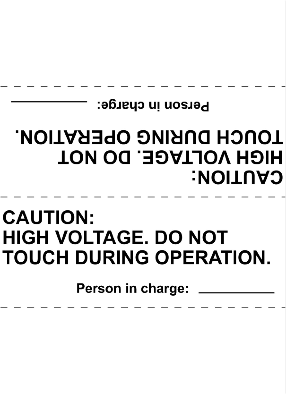 (k) Use the "CAUTION: HIGH VOLTAGE. DO NOT TOUCH DURING OPERATION." sign to notify other engineers that a high-voltage system is being inspected and/or repaired.