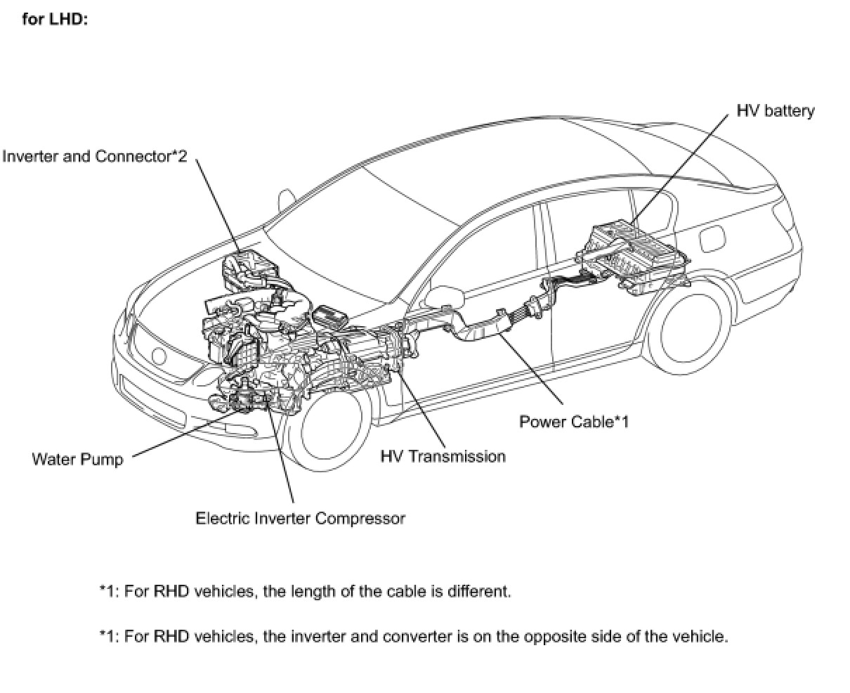 (b) All high-voltage wire harnesses are colored orange. The HV battery and other high-voltage components have "High Voltage" caution labels. Do not carelessly touch these wires and components.