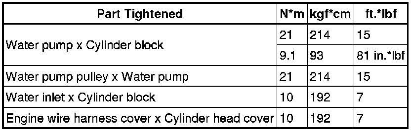 SERVICE SPECIFICATIONS: 2GR-FSE COOLING: TORQUE SPECIFICATIONS