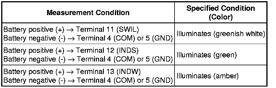 (a) Apply battery voltage between the terminals of the switch, and check the illumination condition of the switch.