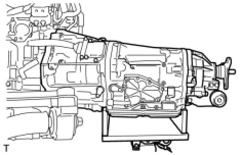 (a) Support the hybrid vehicle transmission assembly with a transmission jack.