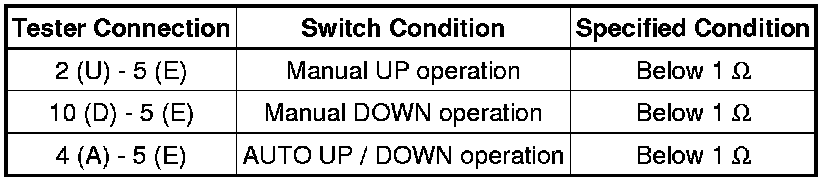 If the result is not as specified, replace the power window switch.