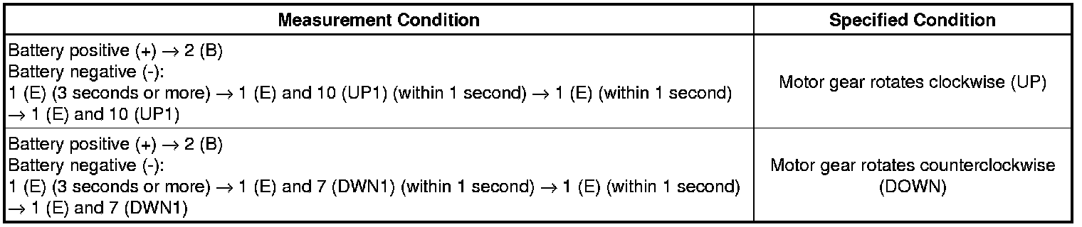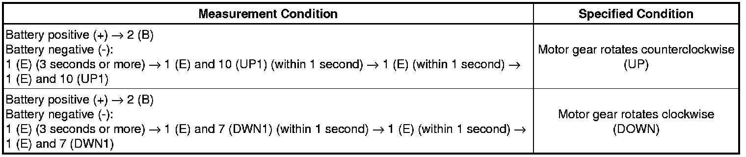 (b) Apply negative (-) battery voltage to the connector terminals 1 (E) and 7 (DWN1) / 10 (UP1).
