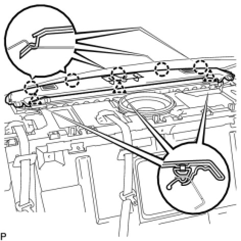 (a) Attach the clip to install the package tray trim panel.