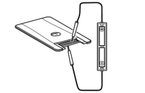 (1) Remove the battery from the electrical key transmitter that does not operate Removal. Attach a lead wire (0.6 mm (0.0236 in.) in diameter or less including wire sheath) with tape or equivalent to the negative terminal.