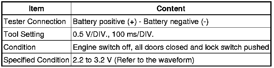 When measuring the battery voltage, while operating the lock switch of a door handle, bring the key (for card type) within the smart access system with push-button start operating range to perform the measurement. For the smart access system with push-button start operating range, refer to System Description Smart Access System With Push-Button Start.