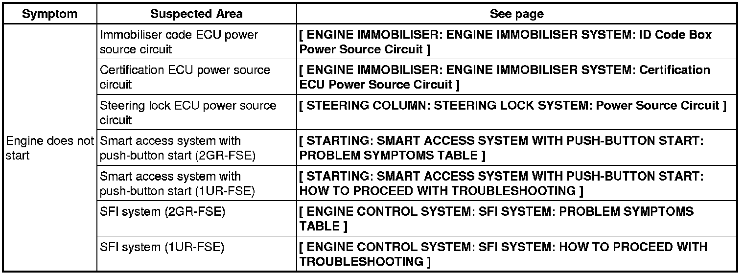 ENGINE IMMOBILIZER: ENGINE IMMOBILIZER SYSTEM: PROBLEM SYMPTOMS TABLE