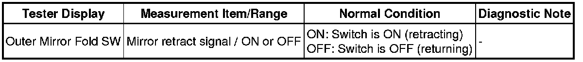 6. READ VALUE USING TECHSTREAM (MIRROR RETRACT SWITCH)