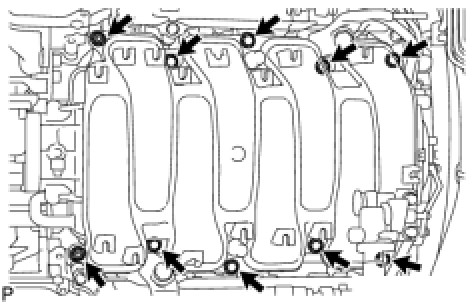(b) Remove the 8 bolts, 2 nuts and intake manifold.
